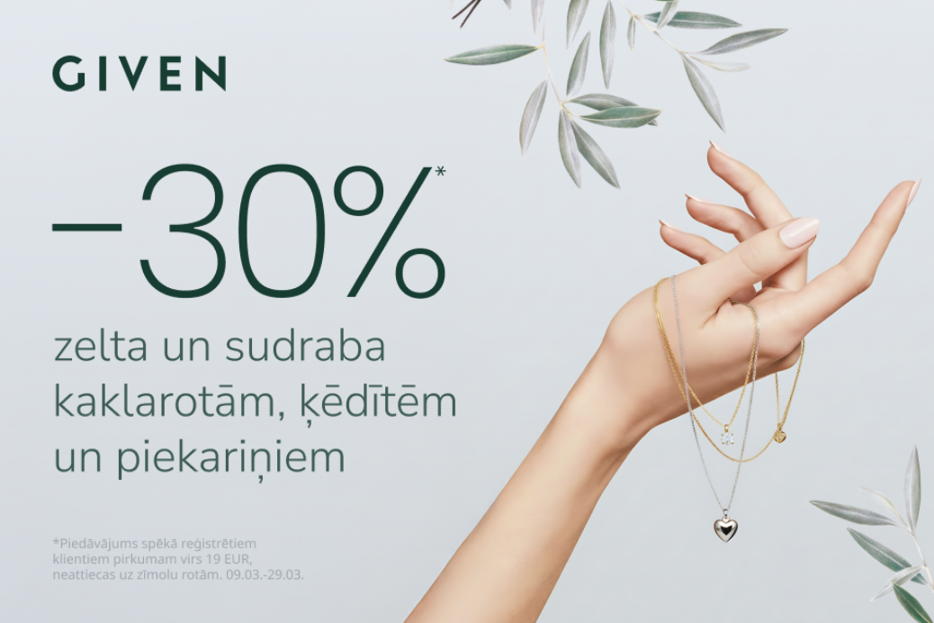 Piedāvājums spēkā reģistrētiem klientiem, pirkumam virs 19 EUR.