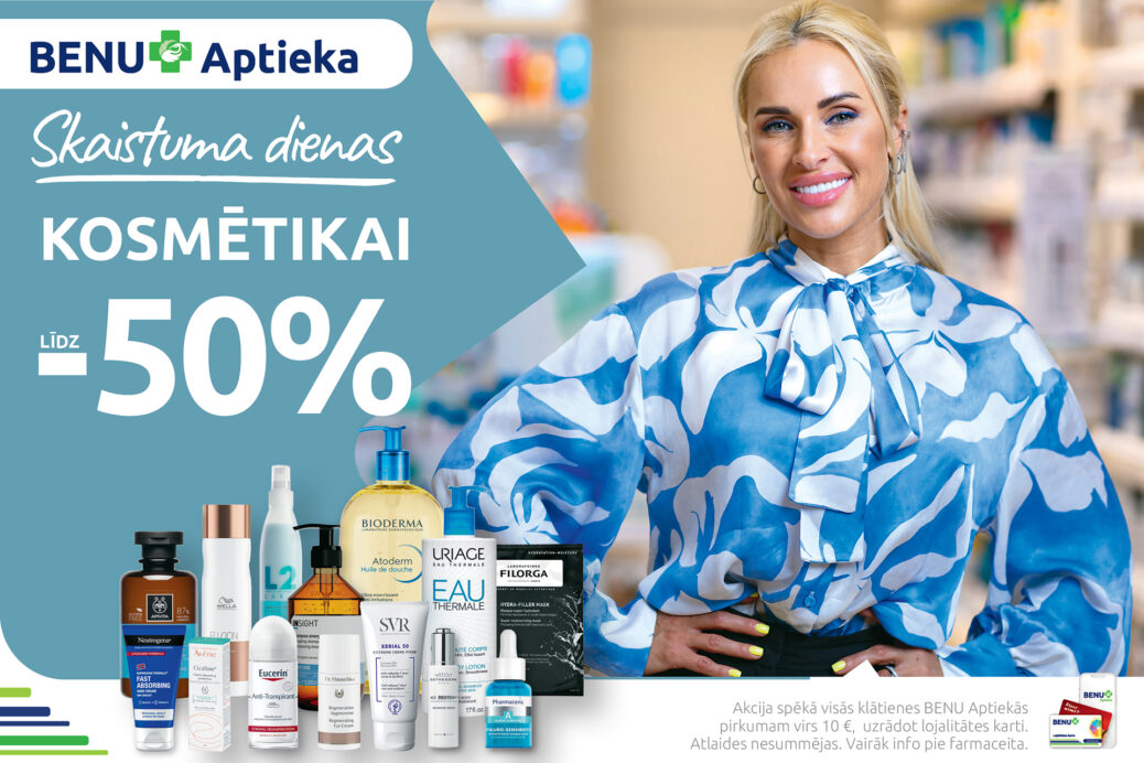 Katru trešdienu un ceturtdienu BENU Aptiekā Tevi gaida lieliski kosmētikas piedāvājumi – populāri zīmoli ar atlaidēm līdz pat –50%.