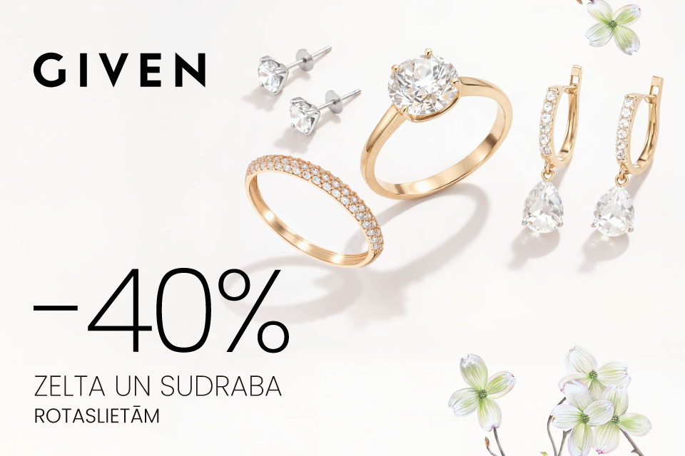 Piedāvājums spēkā reģistrētiem klientiem pirkumam virs 19 EUR, neattiecas uz zīmolu rotām.